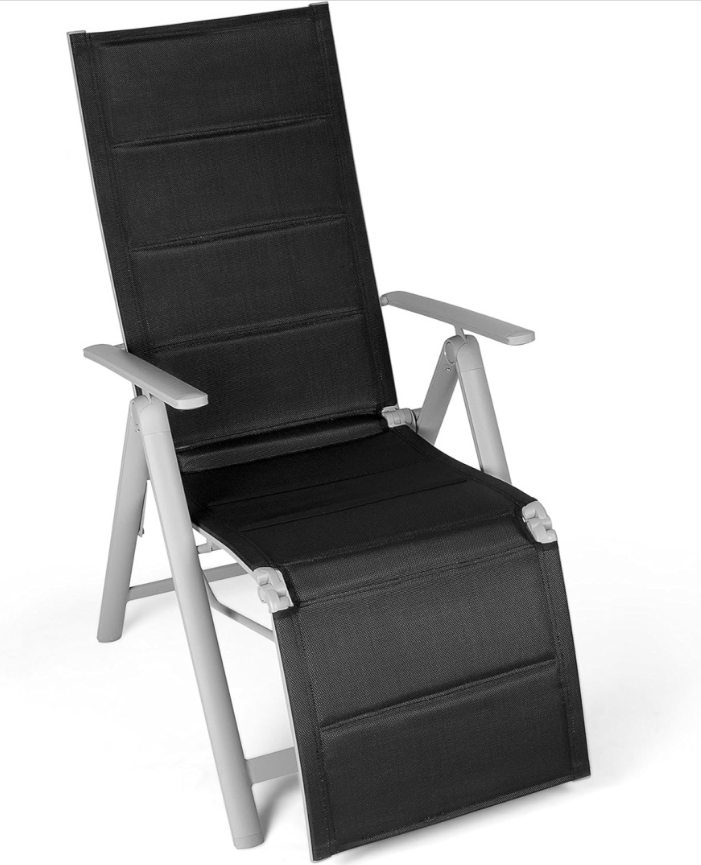 Krzesło ogrodowe G-8465, tapicerowane, z podnóżkiem, składane, czarne, 57 x 74 x 110 cm